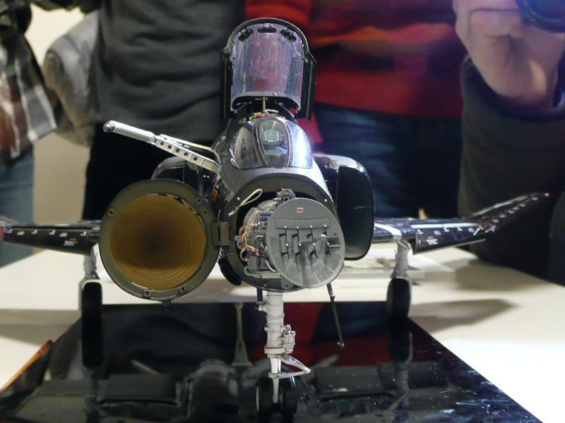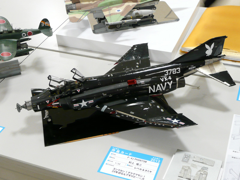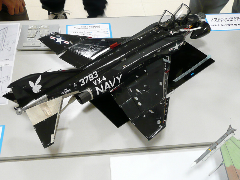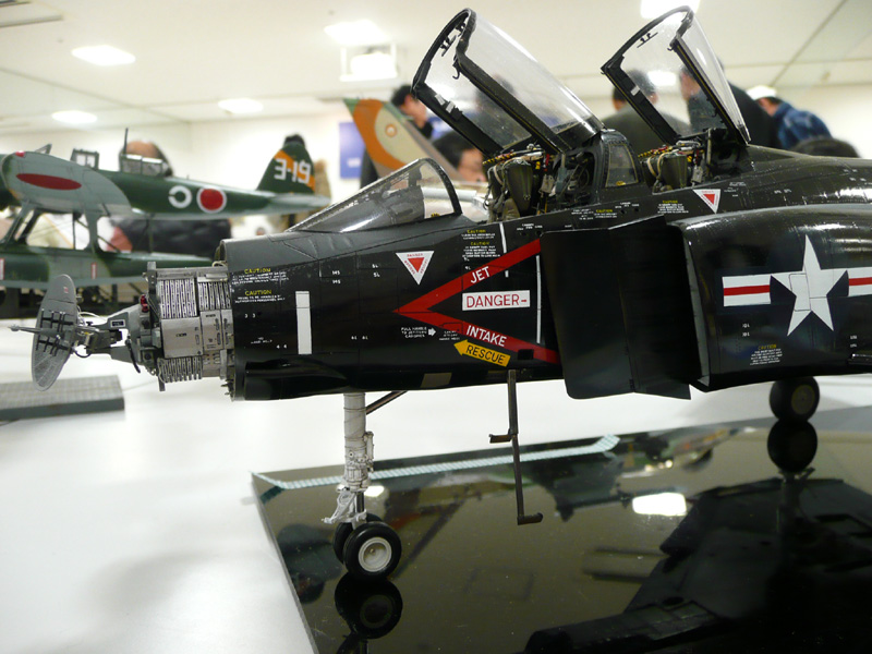 話題の“100年ファントム”です。制作を開始して29年という作者の執念がこもった作品です。29年という歳月のため胴体はレベルのキット、主翼はタミヤのキットだそうです。しかし写真でお分かりのように、ほとんどの個所が実機同様に稼働するというもので、見入ってしまいました。