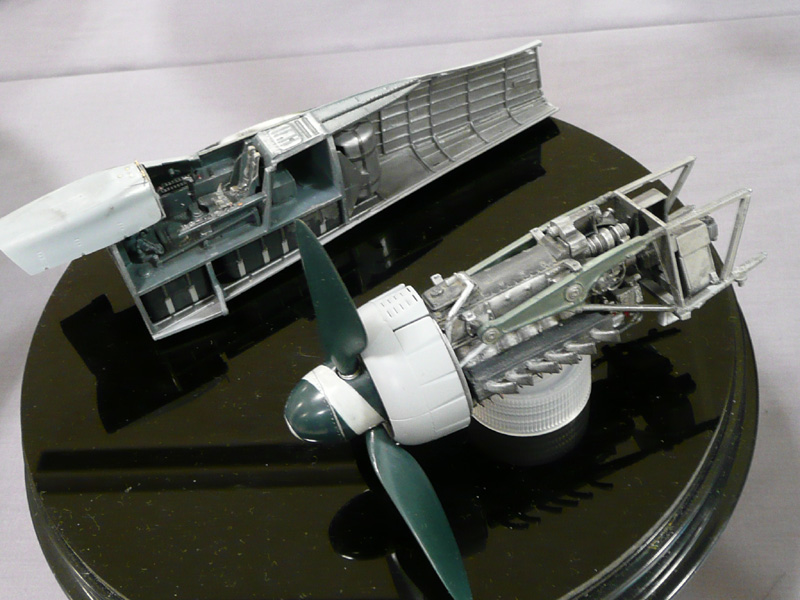 正面から見たところ。AWG-10のレーダ・ディッシュには穴があけられています。レドーム内も完ぺきに工作。
