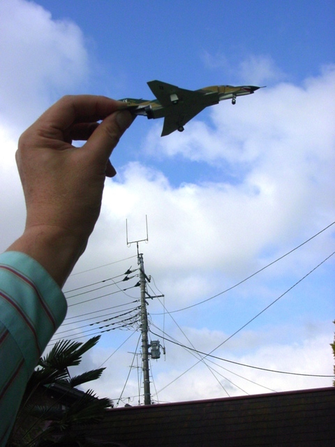 | 次にエアインテークのパーツを付ける。ピッタリと付くはずもないのだから、ここは瞬間接着剤を流し込んで隙間を埋めて削り合わせたのだが、気が付けばきれいに整形できている。“ちょっと形が違うね”とか仮に感じたとしても、気にしない。こんどは主翼を胴体下面へあててみる。“ホホ~っ、主翼にある胴体下面の方が、胴体上側面よりもだいぶ横に出るねぇ”とかも感じないようにして、削り合わせる。尾翼はどうか。“胴体との削り合わせが必要だな”とは思わないし、付け根にある差込ベロを切り取って整形、下反角に注意して接着することで隙間無くスッキリ解消する。 |