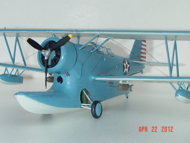 まず下翼の上半角を出します( はめ合いは昔キット特有のガタガタ シーガルの台に乗せ垂直尾翼を基準にしてアライメントを出し 翼下にフロッピを積んで高さ出しをして接着)