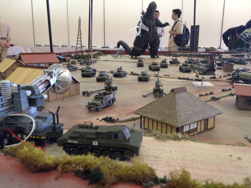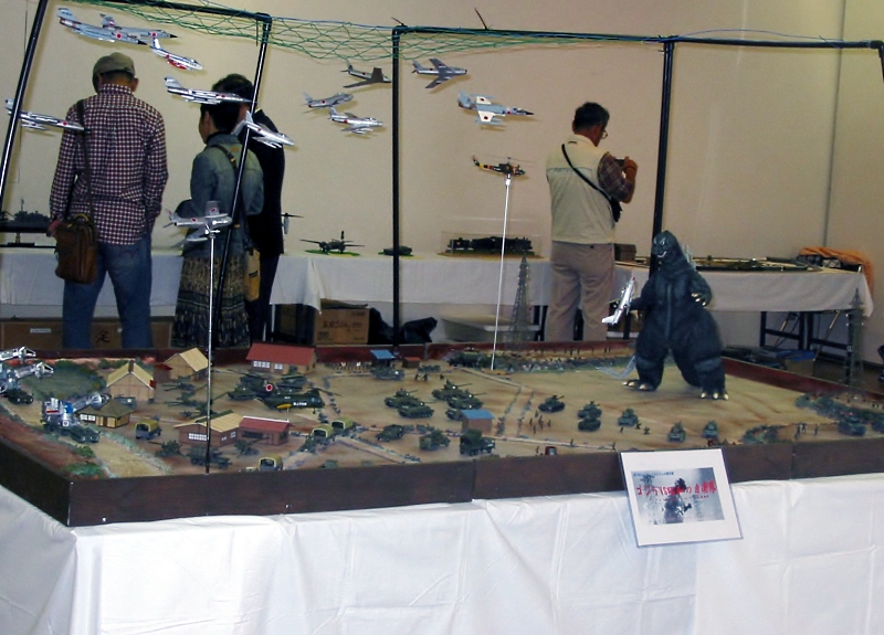 特に今回1800×2700のベース上に、初のスケール(主に1/72)ものとキャラもののコラボ企画として展開した「ノスタルジア ゴジラ対昭和の自衛隊~おじさんとお兄さんのプラモ原風景」は性別年齢を超えて、また、スケールものを専門とされる友好クラブの皆様からも、支持していただくことが出来ました。
