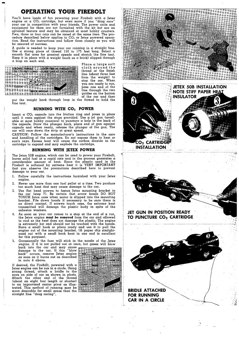 GRIFFONさんから せっかく 写真を送っていただいたので、ご覧いただきたいと思います。古のジェット動力車 Fireboltですが、遊び方は JETEXエンジンかCO2ロケットカートリッジを詰め込んで走るという とんでもないSF的なメカ搭載のレースカーです。
