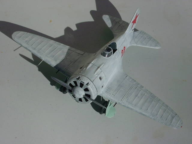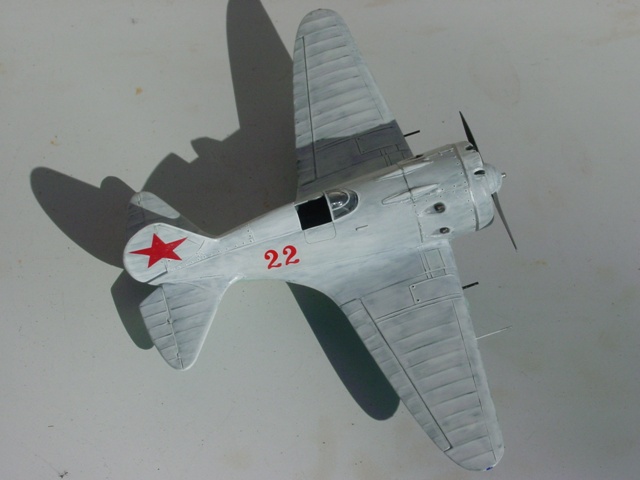 私が所属するプラモサークルS.L.B.の来年度展示会テーマのひとつが「白」。“シロねェ・・・”とかぼやいていたら“ロシア機を冬季迷彩にすればイイじゃないですか”と提案されていたので、今回の製作となった。提案者のO氏も私も、このキットの主翼平面形が大間違いであることなど百も承知、だから修正の必要はなくそのまま「レベルのI-16」を作ったのである。