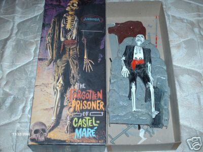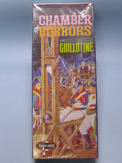 | アメリカのオーロラ社は、1/48WWI複葉機や1/8フィギュアなどのキットを発売していたが、全く似ていない飛行機やホラー映画のモンスターなども多数あります。その中でも地下牢に繋がれて白骨化した囚人や18世紀フランス革命で使われたギロチン処刑台のキットは、おぞまし過ぎると物議をかもして話題になり、複葉機はケロッグのオマケになったりしたが倒産、その後ポーラーライツやメビウスからホラーシリーズ、SFキャラなどが再版されています。 |