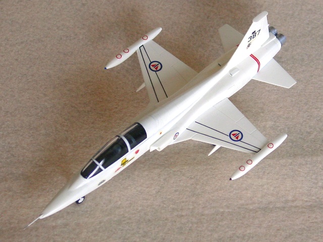 次にエアインテークを胴体につけるのだが、これがとんでもない肉厚だ。まあ、それらしく薄く整形しておく。エンジン排気口は左右を連結一体成型するというお気軽さ。しかも左右がくっついているのが丸見えで、さすがに“こりゃ、ちょっとね”と思って中央にノコを入れて隙間をあけた。当然のことながら穴が開いてしまった。余計なことをしなければ良かったと反省はしたが、穴埋め改修などはしない。