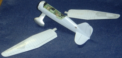 当初は 別売りデカールを使って エジプト空軍の銀塗装としていたので、一度 バラバラにして 塗装を落として、筋彫りをほどこし、翼後縁を薄く削り直し、コクピットも塗り直した。