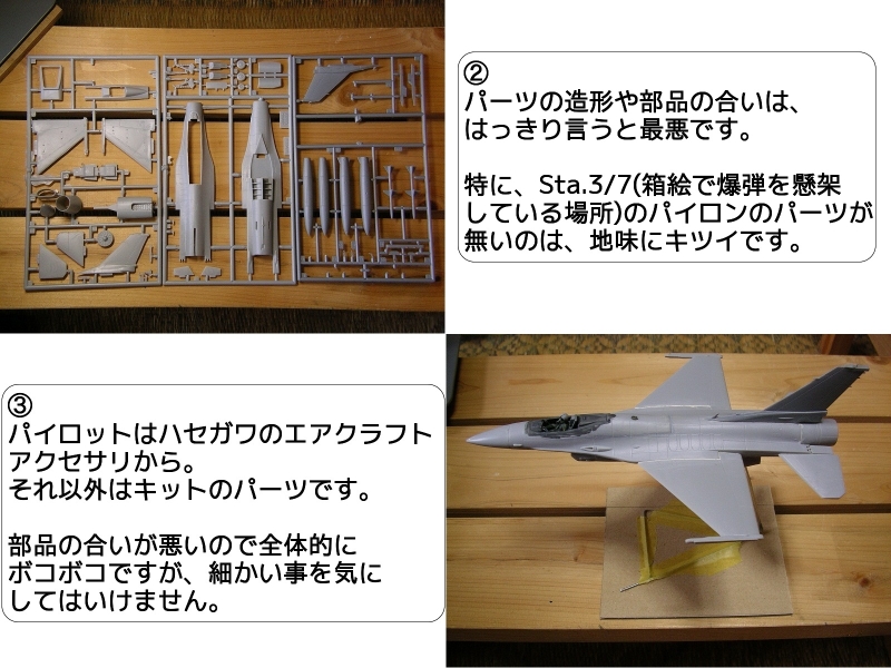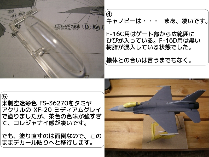 1/72 F-16のキットは安価で良質な国産製が入手可能なので、パーツはもちろんのことデカールの質も悪い本キットは少々つらいですね。
