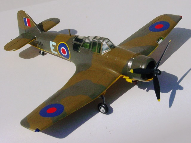 左翼にある着陸燈の透明パーツは翼とまったく合わない。2枚重ねのセロテープを貼って代替する方法をとろうかと思ってはみたが、実行せず。マジマジと見なければ許容範囲、と自分を納得させる。脚柱は3本1組で作るのだが、どれも実感のない棒状。これも近くで見ないことにすればよい。タイヤは昔懐かしい焼き止め方式。これは軸を切り詰めて接着した。プロペラは根元に錘の形をつけてみたが、実機写真を見ずにつけたので正しい位置や形かどうかは分からない。ピトー管は省略されている。さすがは元フロッグである。それに応えてナシのままとした。 |