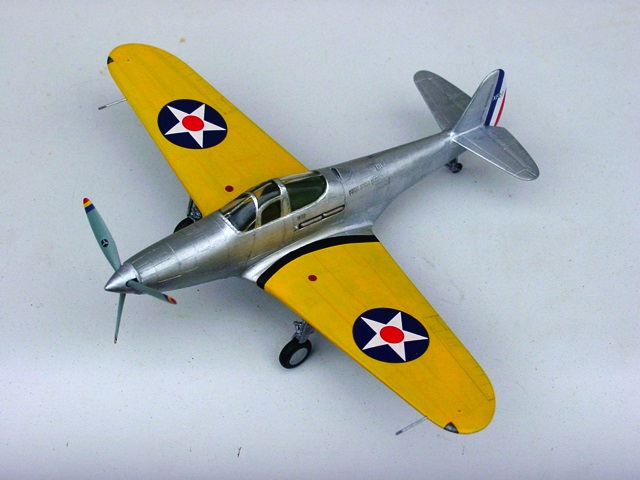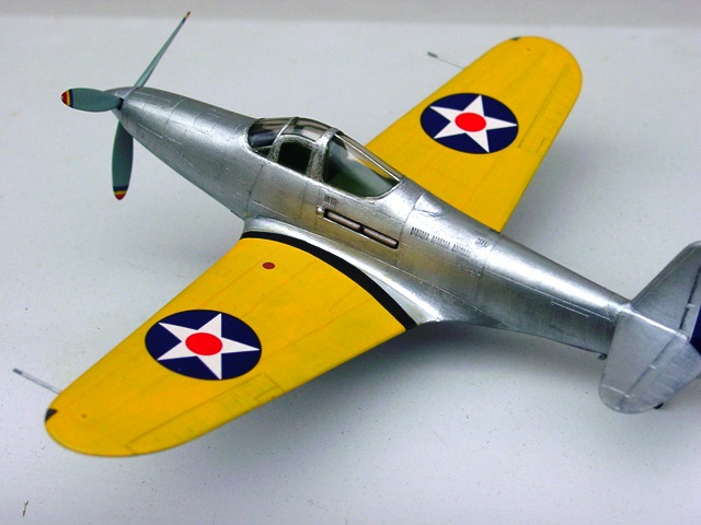 主翼は後縁が厚い。ある程度は内側から削って薄くできるが、表面がダルく丸まっているので削り過ぎると主翼が小さくなってしまう。ほどほどでやめて、上下接着後に下から削り上げて薄く見せるようにする。胴体への組み込みには、胴体側フレットをかなり削り込む必要があったが、想定内。もうひとつの加工は、厚みの固定化。上下面を接着後に間にランナー片を入れて、左右翼の厚さを揃えると同時に、そこで確定する。 |