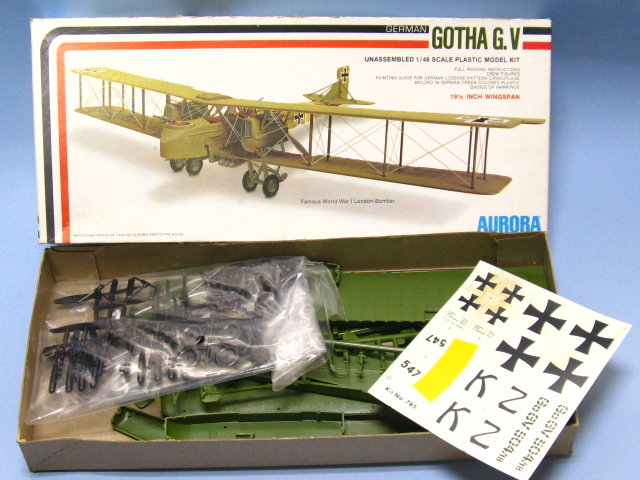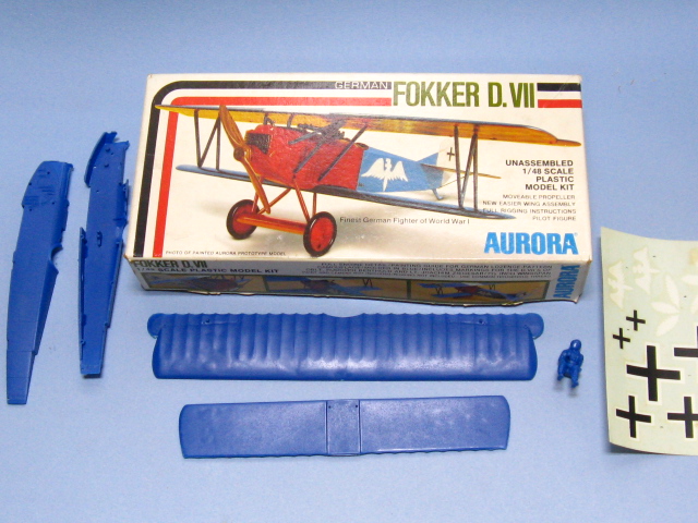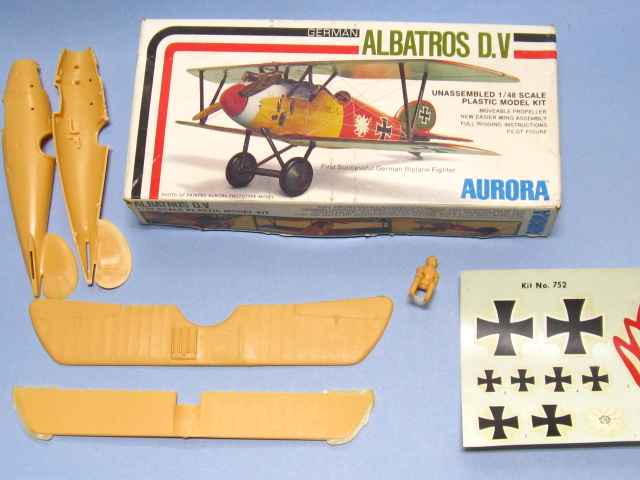 オーロラは1/48スケールで第一次大戦を中心に複葉機キットを発売していたが、1972年から正方形のパッケージとなりデカールが一新されて、ブリスターのチャチな地形ディスプレイ台が入るようになりました。またオーロラの複葉機キットがK&Bの名でパッケージやディスプレイ台もそのまま発売され、1976年にモノグラムが買収してキットはオーロラの社名のまま説明書を変更、2種のデカールが付きモールドを追加して一部を発売しています。しかし残念ながらパイロットのフィギュアだけ残して、それまで入っていた整備員や車止めベースなどのパーツが削除されてしまいました。 |