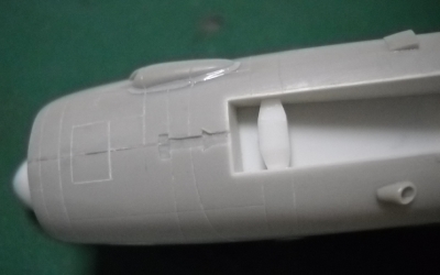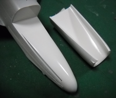 インテークの内側を整形&塗装したら胴体に接着します。