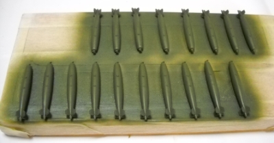 フラットイエローを筆塗りしたら、信管部分をチタンゴールドで仕上げます。