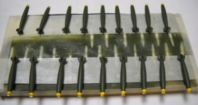 かまぼこ板にテープで仮留めしてイッキに塗装すると楽です。