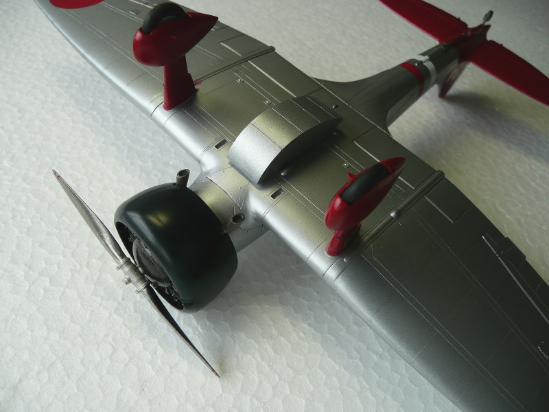 | 今年の夏、スタジオ・ジブリの「風立ちぬ」を見ました。映画だけでなく、主人公の堀越次郎さんもいろんな雑誌で大きく取り上げられたのはついこの前のことでした。映画では堀越次郎さん設計の九試単座戦闘機が、海軍の要求を上回る性能を発揮する飛行シーンが出てきます。このシーンが頭に焼き付いていたのか、丁度仕掛品の中にファインモールドの九六式一号艦戦(1/48)があるのを思い出し、再び取り出して製作に取り掛かりました。それが、このキットが完成に至ったいきさつです。このキットは、プロペラ、エンジン、座席、操縦桿などの部品がホワイトメタル製の限定版で、そのままお蔵入りはもったいなく、完成に至ることができたのはこの映画のおかげと感謝しています。 |