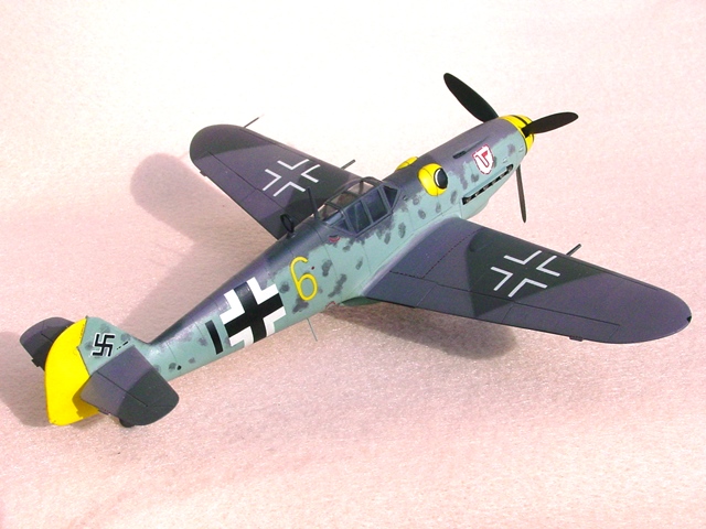 胴体が出来たら、主翼と組み合わせる。まず、胴体と主翼下面の前後を瞬間接着剤で固定する。主翼下面後方では胴体との削り合わせが必要だったが、パテはほんの少ししか要らなかった。主翼を組み込んだだけでは上反角が足りないので、翼端間にマスキングテープ渡して引っ張りながらフィレット部分と固着させる。この引っ張り上げをするので、先に胴体と主翼下面の前後を固めたのだ。固めておかないと、主翼下面が飛び出してしまう。胴体と主翼をピッタリと接着すれば上反角がちゃんと付くし、フィレット部分に隙間は生じない。胴体と主翼を接着したところの乾燥を待つ間に、ガンパックや燃料タンク、脚などの接着や整形をすませておく。 |