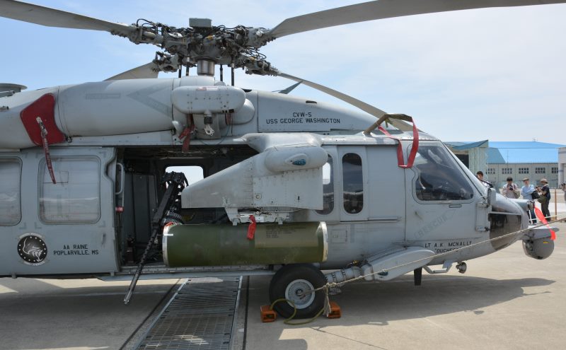 (写真11) MH-60S 右側はロケット弾パックとブローニング機銃を装備