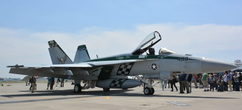 5月3日に米海軍厚木NAFにて、恒例の春祭りが開かれました。昨年と同様に天候にめぐまれ、数万の人が詰めかけ、セキュリティ入口の入場には3時間近くの長蛇の列となりました。昨年の苦い経験から 朝7時から並び、10時20分には会場に入ることができました。上の理由で午前中は会場に結果的に入れる人数も多くなかったので、展示機を全景で写真に収めることができたのは幸運でした。