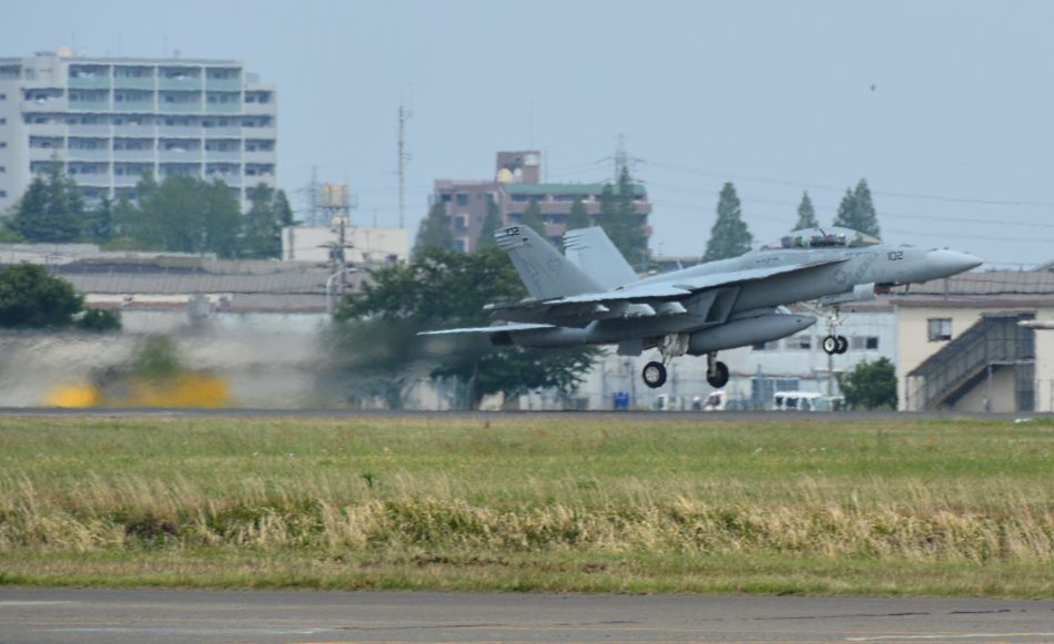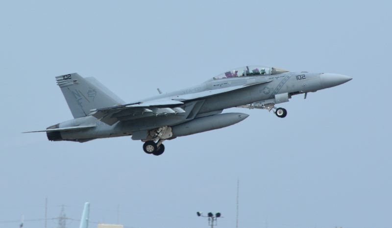 (写真26) 飛行訓練に飛び立つ FA-18F NF102