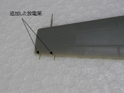 またこの機体もテイルヘビーのため、機首に錘を取り付けます。このキットの説明書には10gの錘が必要と記載されているので助かりました。胴体は下面と上面左右の3部品で構成されますが、後部胴体の上下面の接続部に若干の隙間が生じました。また、V字型の尾翼を支えるパーツが胴体と別部品になっていますが、この部品と胴体の接合部にかなりの隙間が生じたため、パテで埋め、修正しました。(写真1)その後各部を整形すれば胴体の工作は終了です。