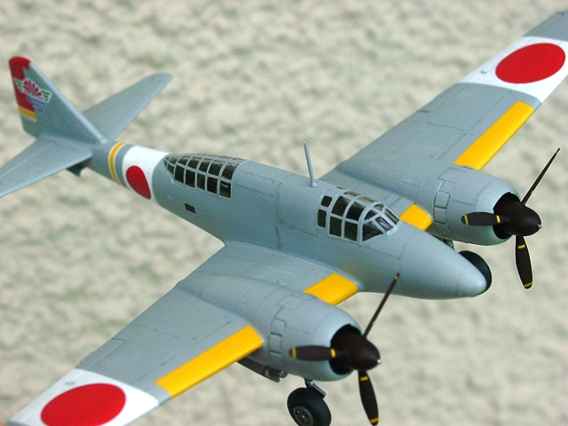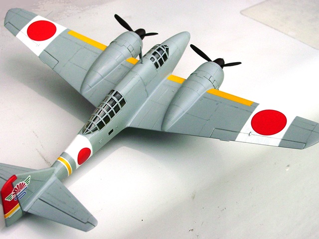 | 次は主翼。垂れ下がらないように曲がりを腕力で直し、上下パーツを接着。胴体に差し込むベロは切り落とし、面を整形しておく。こうすれば隙間が生じない。カウリングを見るとだいぶモヤッとしていたので、カウルフラップを強調しておいた。プロペラも50年の歳月を刻んでおり、それなりの整形をする。スピンナーもキビシイのだが、百式司偵II型のスピンナーの形が分かる人は圧倒的に少数派だろうと推定しているので、気にしない。主脚柱は面白い設計だった。脚柱はエンジンナセルの内側上面に接着するので、やたらと長い。 |