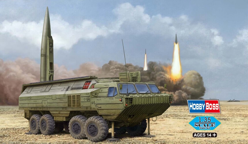 ソビエトの自走式弾道ミサイルで、巨大な8輪のタイヤを持った装輪車に装備されていました。最大射程は400Kmに達するもので、ワルシャワ条約機構加盟国にも広く供与されましたが、1980年代後半にはすべて退役しています。SS-23スパイダーは、NATO側での呼称であり、ソビエトでは、OTR-23 オカと呼ばれていました。全長33.8cm、全幅8.8㎝、キャブおよびシャーシはスライド金型により再現、リアルなパターンが入った合成ゴム製中空タイヤ付き、パーツ数630以上、エッチングパーツ付き、新金型。