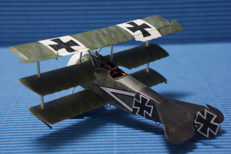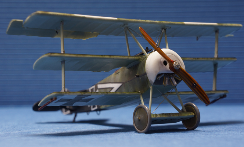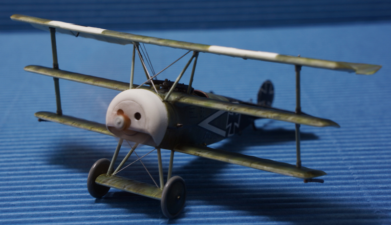ロータリーエンジンということで、エンジンとプロペラが軽く回転するように手をいれましたが基本的に素組みです。 今回はキット指定の地味めの塗装ですが、Dr1には派手な塗装例が多くあり今後の楽しみにしたいと思っています。