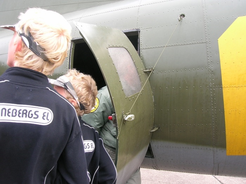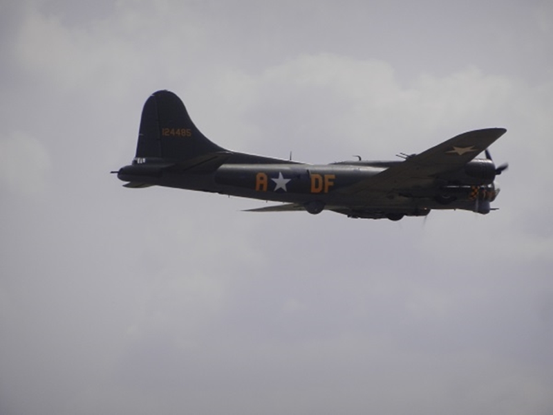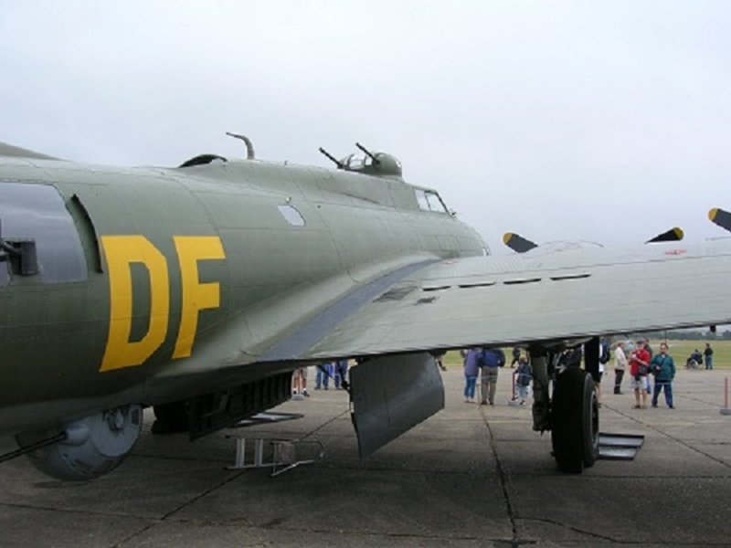 ダックスフォードは、帝国戦争博物館の航空機、地上兵器のコレクションの常設展示場なので、エントランスで入館料金を支払いますが、エアショーなどの特別の時は割増料金になります。フライト予定の機体は滑走路脇に駐機され、仕切りで近づけないようになっていますが、午前中は出入口が一つあります。そこで追加料金を払うと、滑走路進入が認められて、より近くから実機の拝観と撮影が可能になります。そして駐機中のB17G等の大型機は、さらに(三回目の!)料金を払うと、機内に入れるシステムになっています。