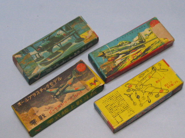 まだ国産プラモ黎明期で小学生の買えるキットは少なく、町で唯一の模型屋で三共ピーナッツ・シリーズの飛行機をコツコツ買っています。デパートの玩具売り場には箱絵もすばらしいオーロラの空母エンタープライズやレベルの巨大な原子力発電所など遠くから見るだけでしたが、父親がボーナス時にレベルの空母フォレスタルを買ってくれてエレベーターの昇降ギミックに驚いたものです。家の立替で箱やいくつかの完成品は無くなりましたが、父親が作ってくれた模型棚のおかげでソリッドやプラモは今もほとんど保存してあります。横浜市内の中学へ進学して元町の千代田ママストアや黄金町の輸入プラモ店、新橋ステーションホビーへ通って顔を覚えられて貴重な輸入キットを心行くまで見せていただき、買えなくても幸せな時を過ごせました。当時は高価で買えなかったキットも海外のオークションで入手しましたが、最近では落札価格が高騰して日本向けの送料も高くなりとても入札する気にはなりませんね。 |