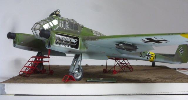 可動部が多い割にはパーツが細く強度が無く、銅線等で補強が必要でした。このドイツ機のエンジンがシリンダー下向いてるのをはじめて知りました。メッサー、確かに排気管が下についてます。エンジン作ってみて初めて知りました。