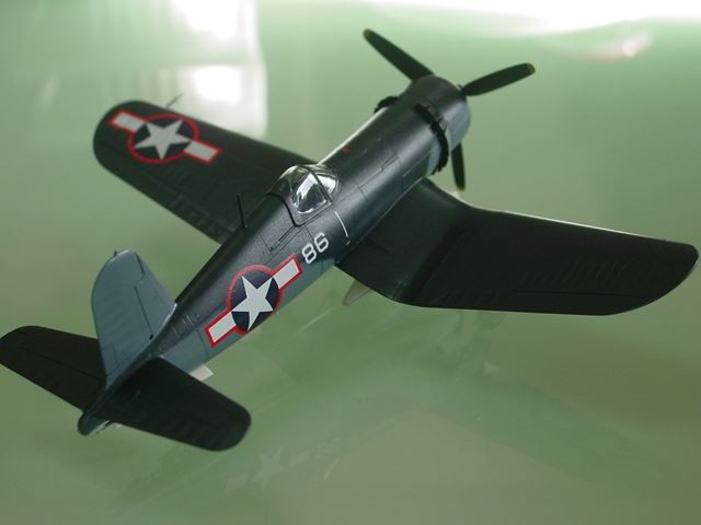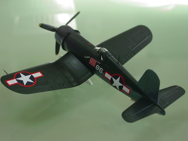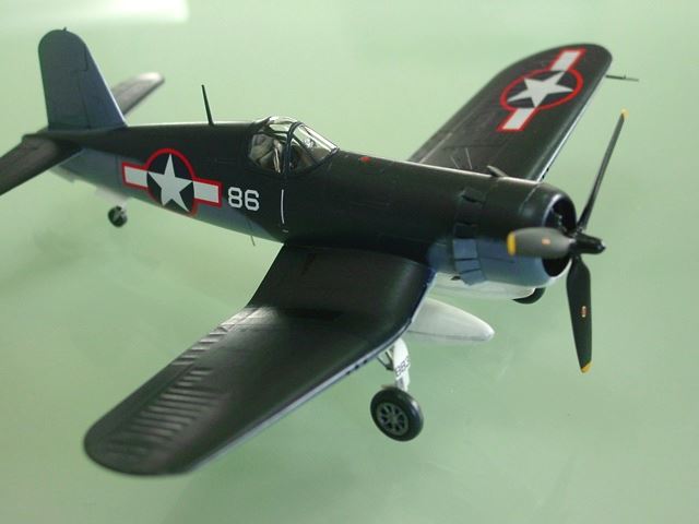 私は両翼端から胴体を跨ぐようにマスキングテープを貼っている。脚柱は組図で感じるよりも簡単でしっかり組める。ホイール内面の塗装を忘れないこと。脚カバーはなぜか左右一体で成形されており、切り離して使うようになっている。飛行状態用のスタンドはないのだから、なぜ閉状態のパーツにしたのか意図をはかりかねるが、まあいいだろう。落下タンクは左右揃うように、やや前下がりくらいに接着すればよいと思う。正面からみてねじれないように。風防はピッタリとまでは言わないが、隙間なく位置決めできる。天蓋は開閉選択できるようにしたためか少しゆるいが、これはプラモデルとしてのお楽しみを優先選択したと評価したい。そうそう、アンテナ柱は塗装にあわせて加除しておくこと。 |