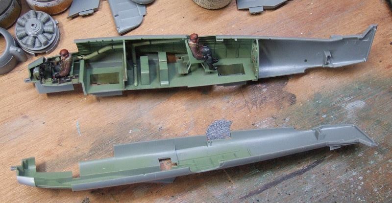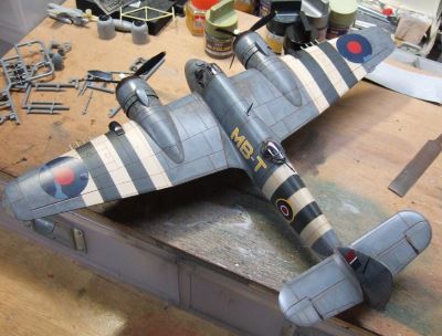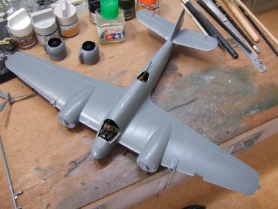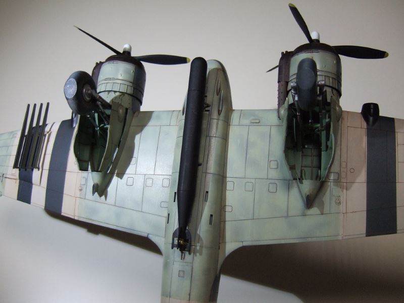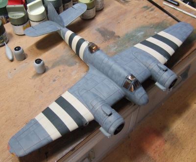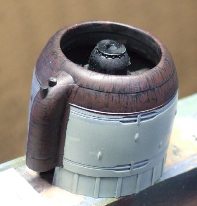 (写真10)エンジンカウリングも塗っていきます。黒塗ったあとレッドブラウンを面相筆でぺたぺた。エンジンはハーキュリーズ17型だけど排気方式はロックのパーシュースと同じ前方排気型。まぁ、同じブリストルだし自分とこの機体にゃ自分の作ったエンジン乗っけたいよね。