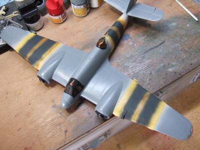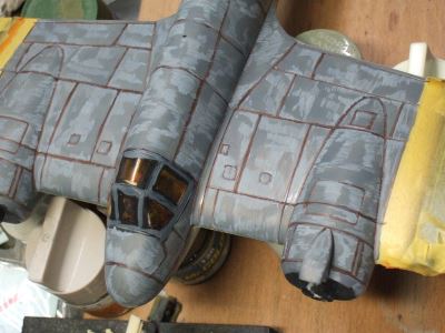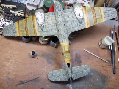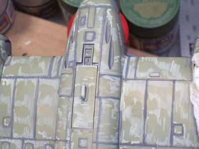 (写真9)近似色でエアブラシをかけたとこです。ほーらこんなに明るい。ムラも良い感じにボケボケになってもう目立たない。そーいや某模型誌でこの方法を発表したら「なりゆき塗装法」なんて命名されたな。確かに計算づくじゃやってないけど・・・・ねえ。