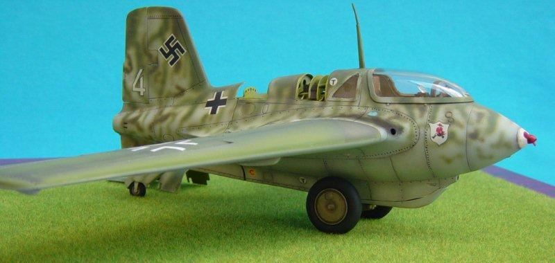| 次に機体の塗装に移りますがドイツ機特有の迷彩となります。塗料はグンゼのラッカー系を使用します。問題は胴体のぼかし迷彩ですが、失敗はしたくないので事前にエアブラシで吹きつけ具合を幾度も練習をしました。ぼかし線は吹き始めと吹き終わりのタッチとそのスピードが重要であることを学習しました。練習の成果があって今回はうまくできたと思います。塗装乾燥後はキット付属のデカールを貼ります。デカール乾燥後タミヤカラーでパネルラインに墨入れします。最後に艶調整でグンゼカラーの全艶消しクリアーを2回ほどエアブラシしました。 |