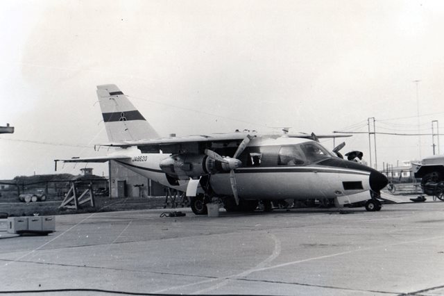 MU-2の原型初飛行は1963年というから50年以上前である。ハセガワのキット発売は1974年でその10年以上も後だが、「飛行機のハセガワ」に猛進している頃とあって、民間機と自衛隊機を一挙に発売した。このキットを新製品で紹介した『航空ファン』誌にあるハセガワの広告には「ハセガワのモデルは初心者からマニアまで誰にも楽しめる作りやすさ」とある。40年前のプラモデルは広い層を対象に開発され、皆が手軽に作れる内容のものだったのだ。ハセガワのキットの前に大滝製作所の製品があって、これは発売当初は原型の姿だったそうだが、私はそれをお店で見た記憶がない。写真はその原型機。 |