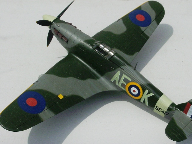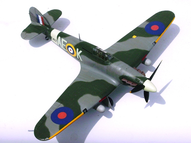 主翼は下面武装用の小穴を開ける程度で上下接着できるが、前縁にあるライトの透明部品には多少の工作を要する。まず透明部品の底部に銀色の丸を描き、その上から黒を塗る。側面も黒く塗る。主翼側凹部も黒塗り。その後に瞬間接着剤でライト部品を固定する。「機内色は黒じゃないだろう!」とのご意見もあろうが、その方が目立つので私の好み。こういう部分は各自で判断すれば良いのだ。固定できたら、その隙間へ瞬間接着剤を数回流し込んで埋める。完全硬化後に主翼に合わせて削ると、隙間が透明材で充填されている。銃口は開口せず、赤いテープを貼ってカバーしていることにする。 |