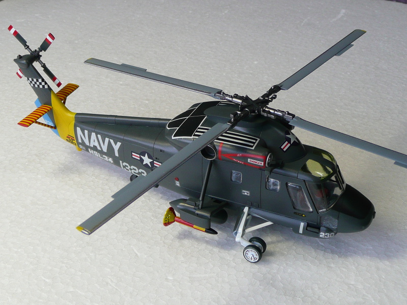 | ここで実機の歴史について少し述べておきます。シースプライトは開発当初は単発の米海軍向けの汎用ヘリコプターで、HU2K-1(後にUH-2Aに呼称変更)と呼ばれました。量産型の部隊配備が始まったのが1962年の12月で、その後出現した、簡易航法装置を搭載したHU2K-1U(後にUH-2Bに呼称変更)と併せ、190機が生産され、ヴェトナム戦争ではレスキューヘリとしても活躍しました。次いでカマン社はエンジンを双発にしたUH-2Cを開発し米海軍に採用されます。この双発型はさらに電子機器がアップグレードしたHH-2D、そして対潜機材を搭載したSH-2Dへと進化しますが、機体の大半は新造機ではなく、UH-2AとUH-2Bからの改修で賄われました。そんな中、1970年に入って米海軍は戦闘艦の攻撃・防御能力向上のため、LAMPS(Light