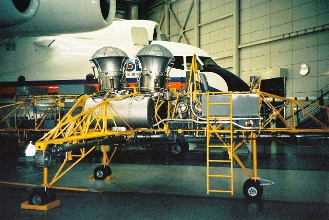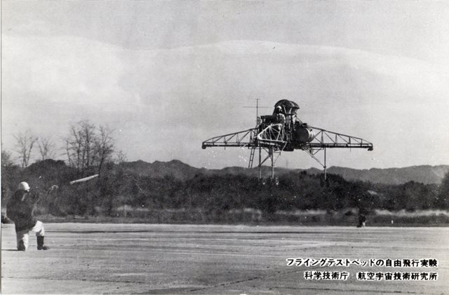 | このハシゴのような物体が「フライングテストベッド」と呼ばれるVTOL実験のための飛行機。「FTB」と表記されることもある。 |