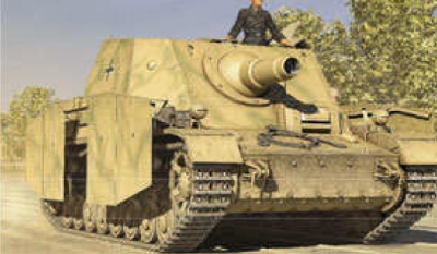 ④Ⅳ号戦車のシャーシに大型の戦闘室を設け、15㎝榴弾砲を搭載して製造された車両で、歩兵部隊への直接火力支援を目的としてつくられました。1943年から終戦まで生産は続けられ、合計300両以上が生産されました。全長16.9㎝、全幅8.1㎝、連結組立式キャタピラ、エッチングパーツ付き。