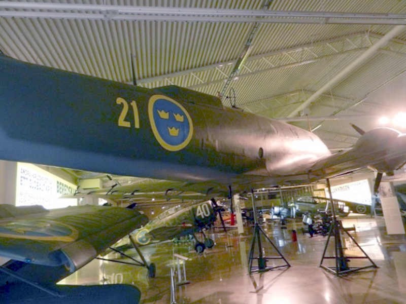 スウェーデン空軍は、ユンカース社から40機購入すると共に、ライセンス権を取得したサーブ社に16機生産させました。博物館の展示機は、1938年にドイツで生産された機体で、1958年にリタイアするまでに2,086時間飛行しています。