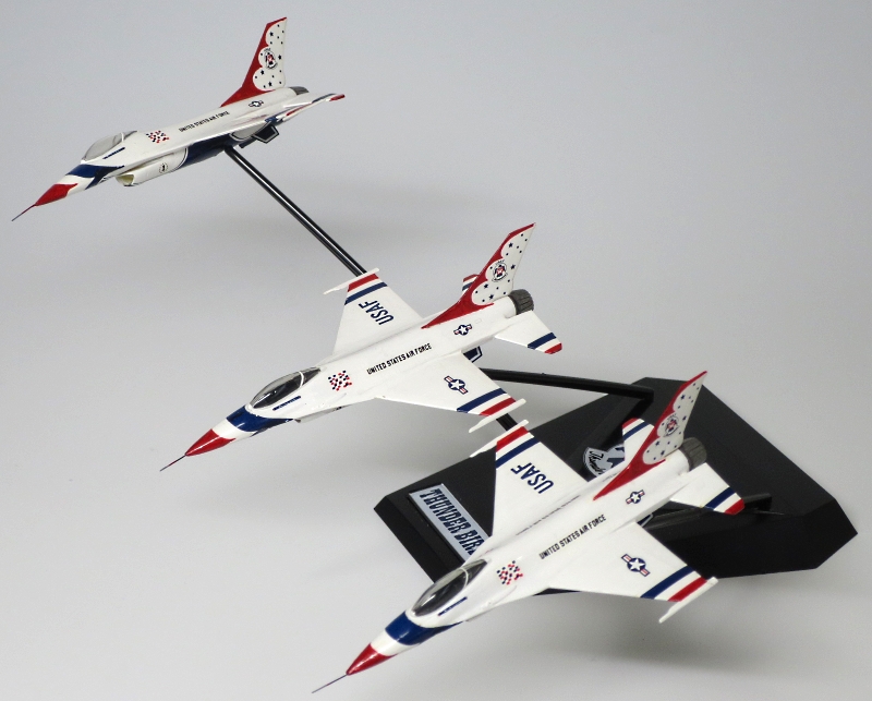 以前、LSから発売されていた1/144のサンダーバーズセットで、20年くらい前に作った記憶があります。3機編隊のF-16を飾れるスタンドが秀逸で、模型店で見かけた時に 思わず手が伸びてしまいました。