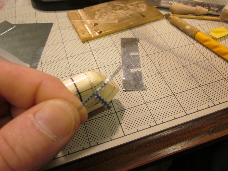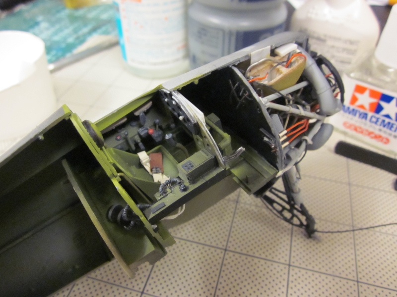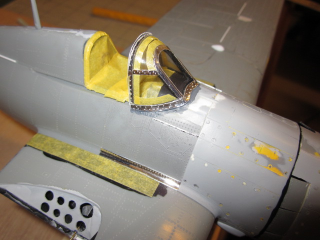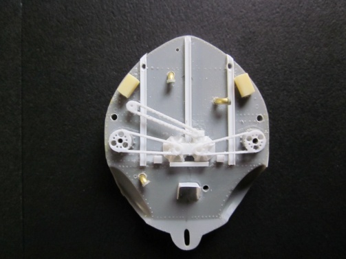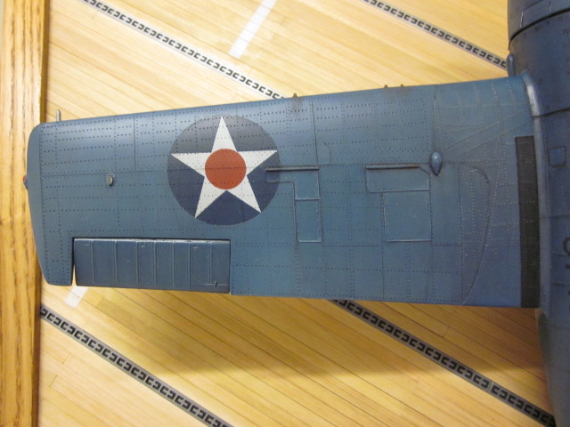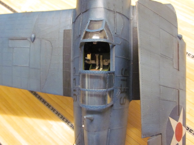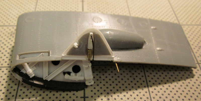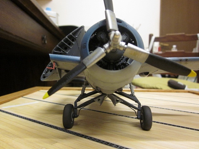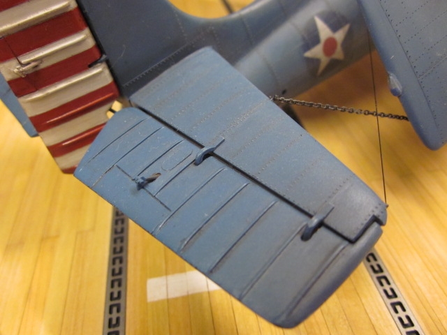 米空母の特徴として、鉄鋼製グレージングにゴムを引っかけて機体を固定するようになっています。この部分はプラ板ですがちゃんと彫刻表現しています。 |