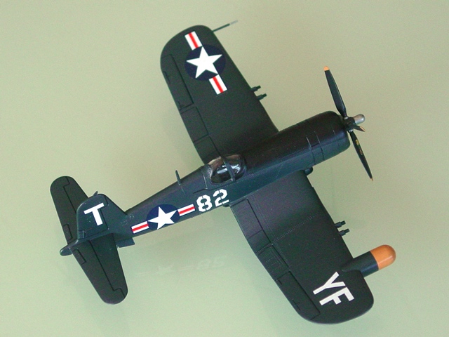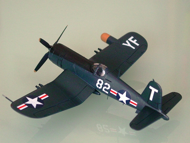 眺める。胴体は単純な線だし、主翼は外翼が広すぎる。そもそも5Nというが、本当か? と思わないでもないが、そのマイナス印象よりも、妙にコルセアっぽく訴えてくる主張がいい。イメージを絵に描いたようなコルセア感で、カッコいい。これはこれでイイじゃないか、プラモデルっぽいぞ! |