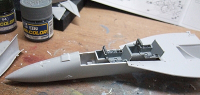 (写真5)コクピットとインテークが決まれば、一気に組み上げてまいます。