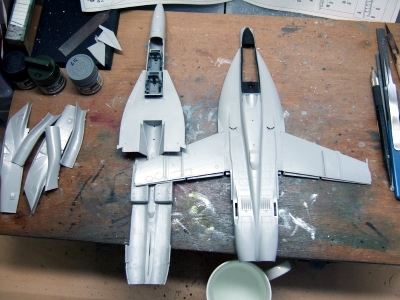 いやぁ、だけど作りたかったんですよね、グラウラー。しかも三色迷彩機で。なにせハセガワスパホはブロック1のものは既に発売されてたけれど、今の所1/72、1/48共にブロック2はグラウラーだけ。F/A型も悪くないけど、流石はハセガワ様。ワタクシの欲しい物がよく分かってらっしゃる。