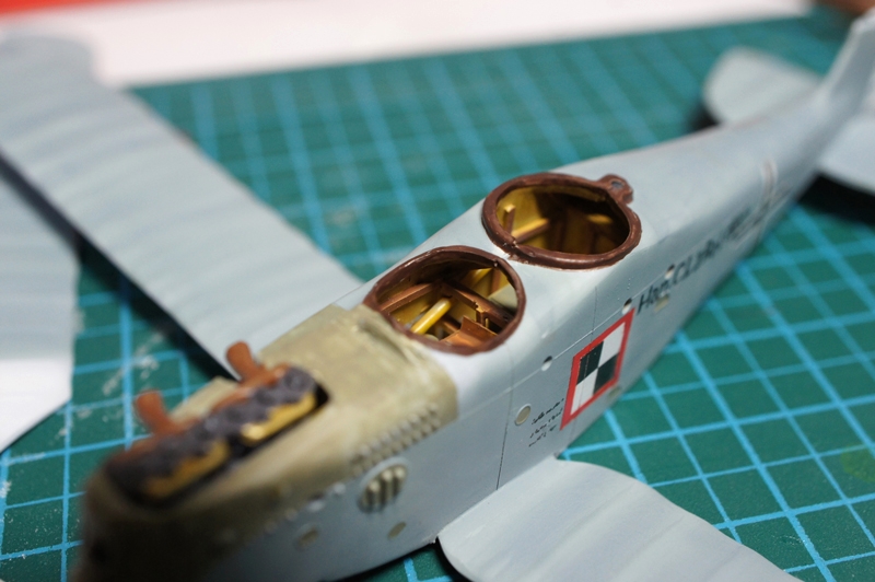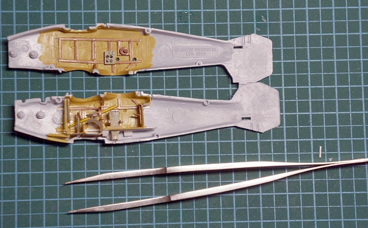 (写真2) コックピット内部は何もありませんので、プラ板で細工しています。