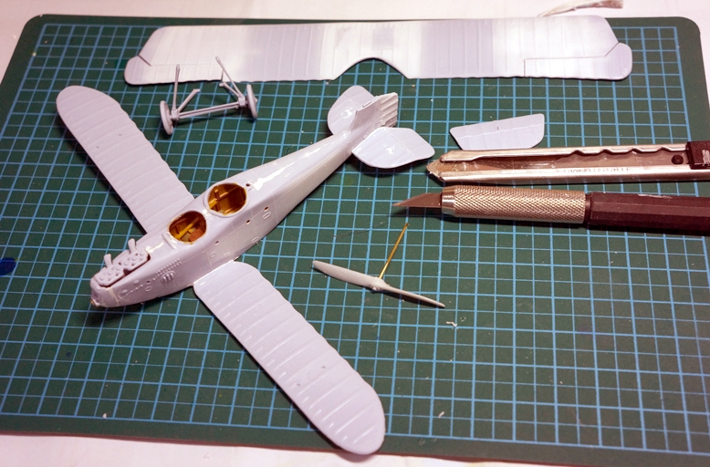 (写真3) 胴体および下翼を取り付け、隙間をパテ埋めします。