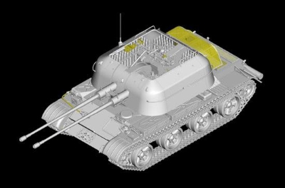 ④ パーツ数:560pcs+α・サイズ:全長 286.6mm/全幅 95mm・ ソビエト軍が採用していたZSU-57-2 対空自走砲"スパルカ"が登場します。57mmという大口径高射機関砲を全周砲塔に搭載、対地攻撃にも絶大な威力を発揮し、現在に至るも各国で運用されています。製品はスライド金型を使用し繊細なモールドで、開放式砲塔や高射機関砲や、T-54戦車をベースとして新設計された車体等を再現しています。履帯は実感溢れる連結組立て式です。