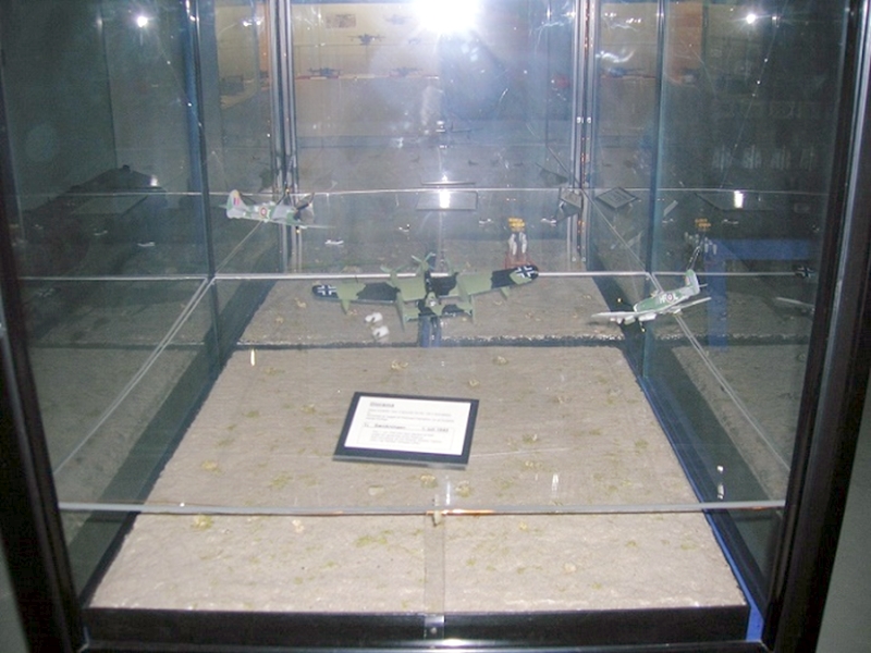 当機の撃墜シーンのモデルによる再現ですが、説明板には撃墜日は1945年6月1日と書かれているようで、真相は不明です。