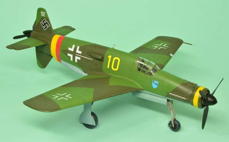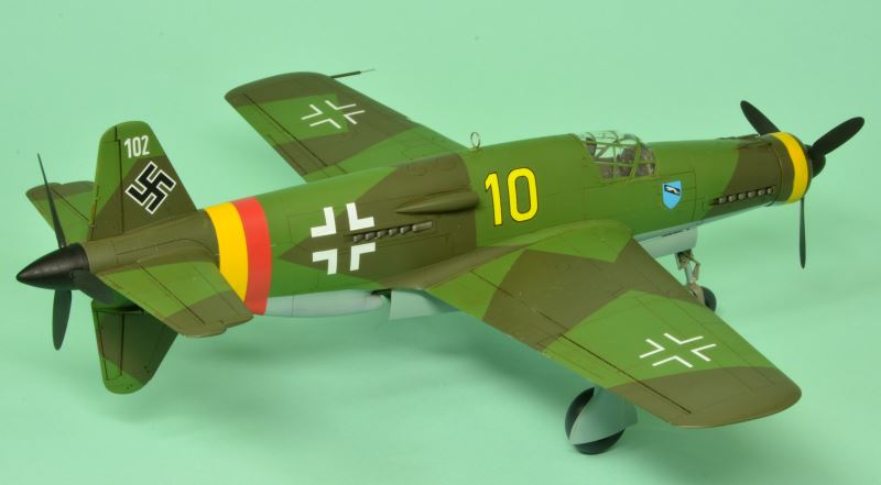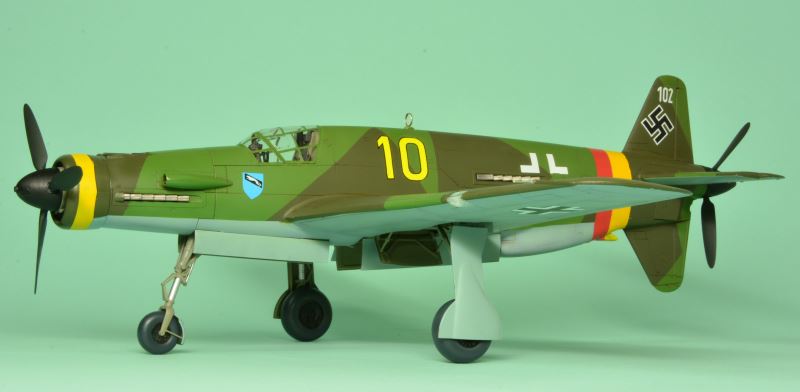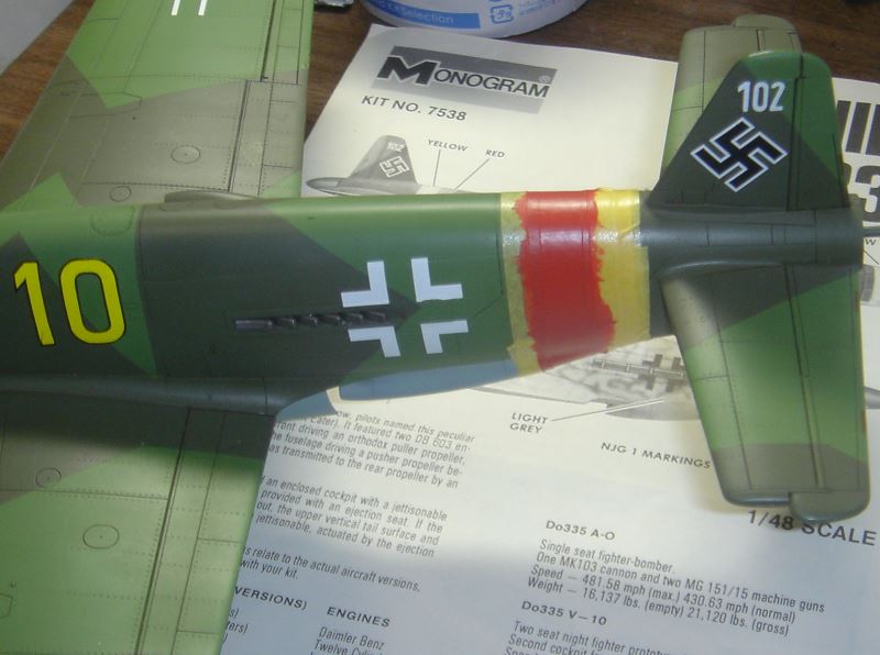実は、以前から作りたいと思っていたタミヤのDo335を、タミヤ指定の単色塗装ではちょっと味気ないので、モノグラムのデカールを流用して実戦配備塗装仕様にしたものでした。
