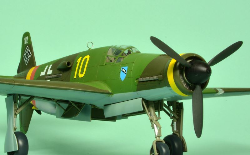 胴体下面には 爆弾倉があります。精密な彫刻で、脚庫ともどもRLMグレーに塗り、ウエザリングするといい感じになりました。